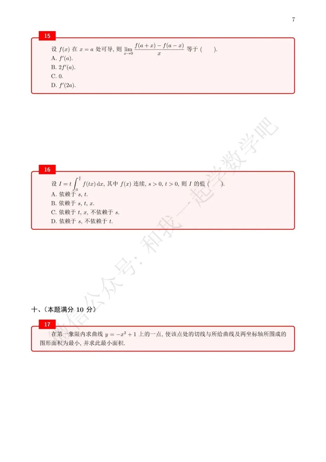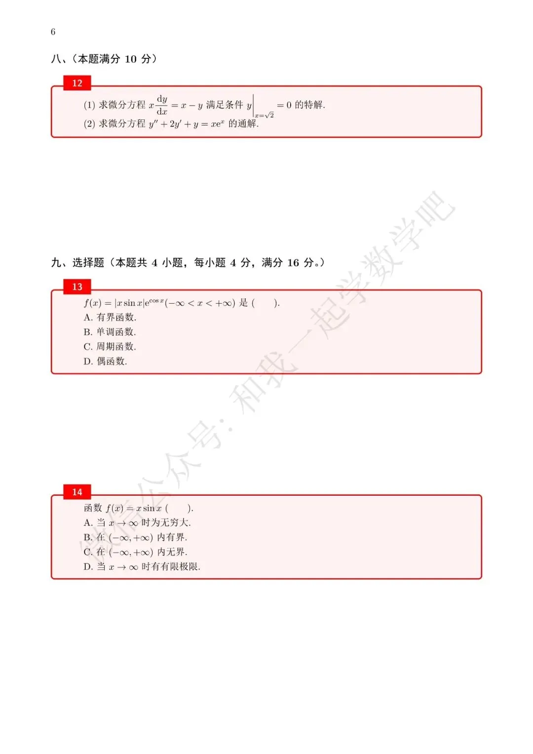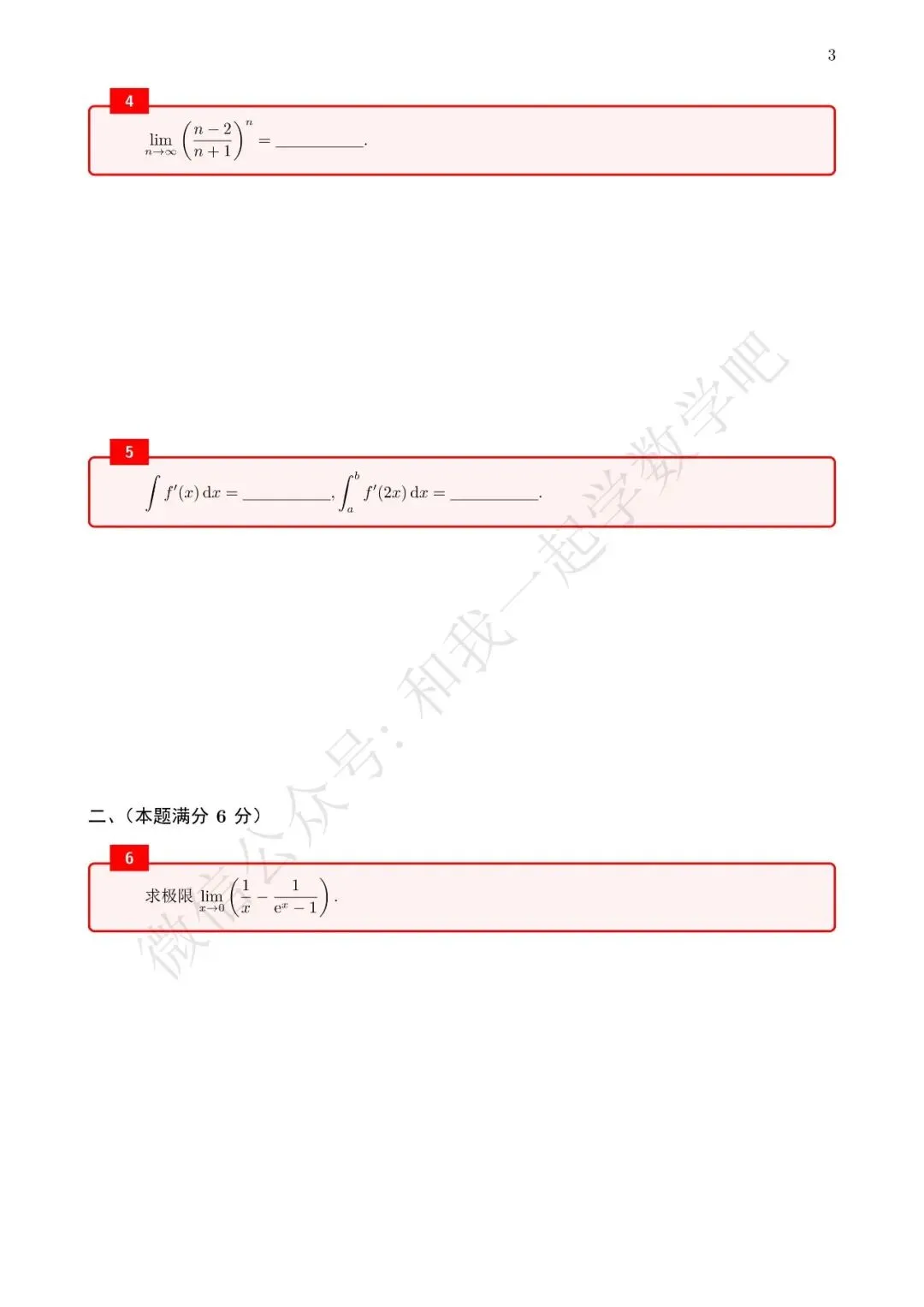 为了方便各位小伙伴们刷题,我重新排版了87年数二的真题,在每道题下面都增加了空白,方便大家写答案,记录相关知识点。以下是图片,需要原版pdf文件的同学可以后台回复"87考研数二"免费领取。