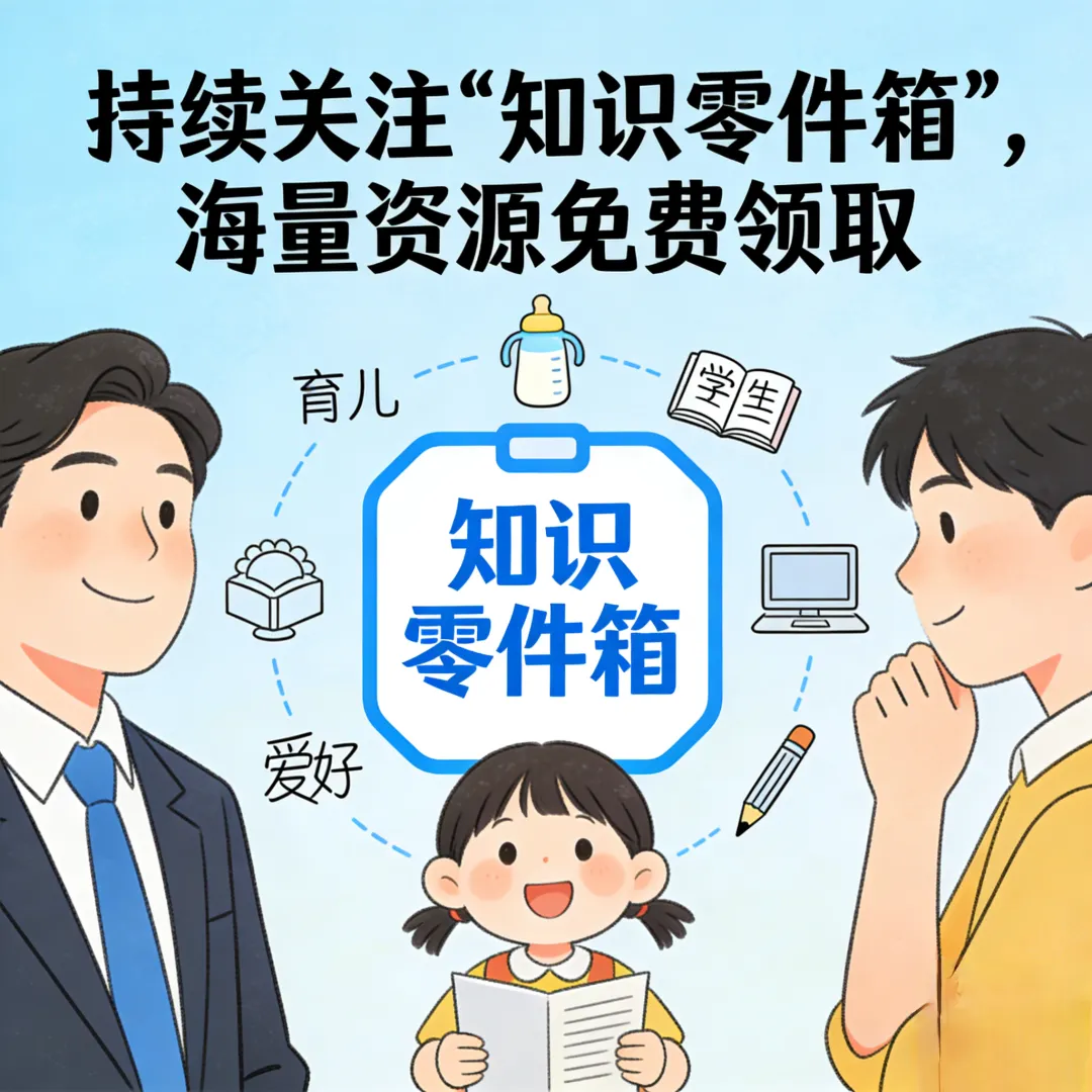 后期,我们还会不断更新更多优质免费资料,比如职场技能提升教程,助您在职场升职加薪;兴趣爱好培养课程,让您能尽情探索自己的兴趣领域。只要您持续关注“知识零件箱”公众号,这些宝贵资源就能第一时间免费领取啦!