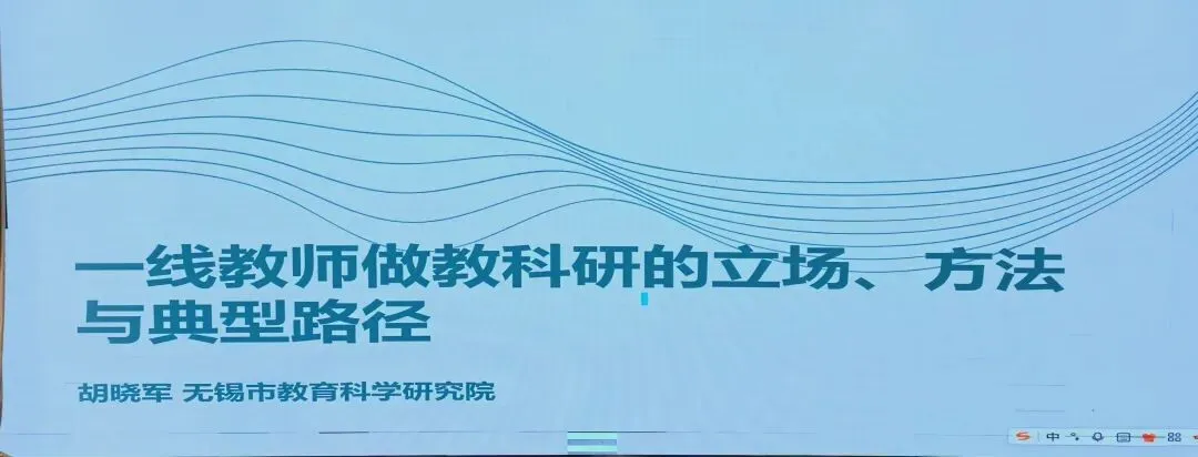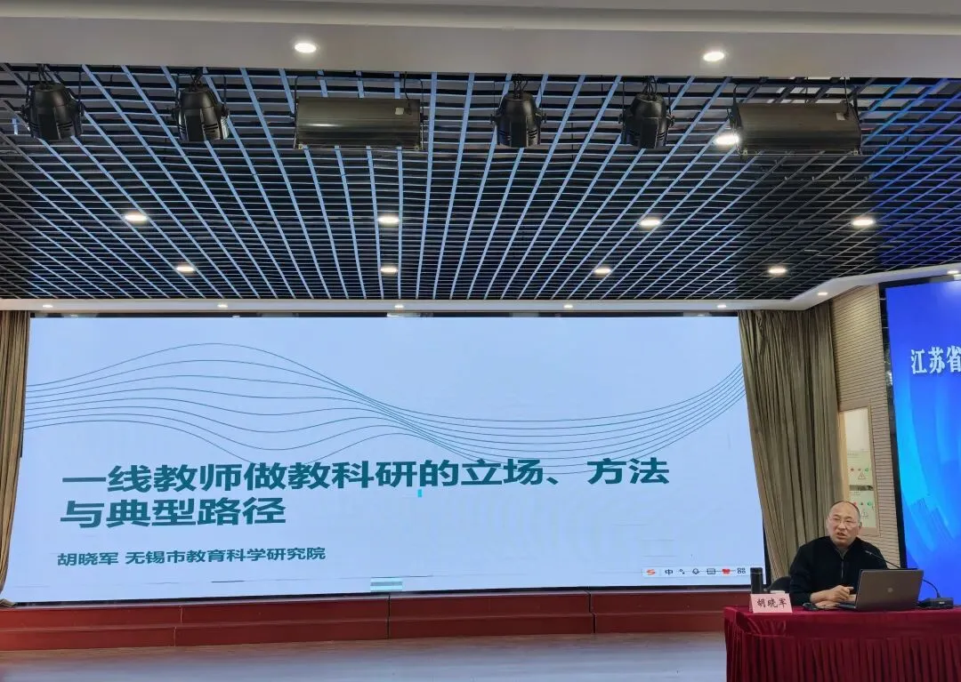 无锡市教育科学研究院副院长胡晓军面向江阴市小学数学教师作题为《一线教师做教科研的立场、方法与典型路径》的专题讲座,为教师专业发展注入科研动能。讲座中,胡晓军副院长明确了教科研的三大核心立场:坚守求是、笃行、创新的教育家精神,秉持“教学·研究”合一理念,锚定教师专业发展目标。在研究方法上,他系统介绍了质性研究、定量研究、实验研究、个案研究、行动研究等科学范式,为教师开展教科研提供方法论支撑。针对典型实践路径,胡院长提出四大方向:以专业写作沉淀教学思考,以课程开发拓展育人维度,以课堂教学夯实研究根基,以课题研究突破能力瓶颈。他结合高品质课题申报书实例,着重强调课题研究需明晰目标定位、理清文本结构、把控细节规范,必要时通过具象化呈现让研究思路更清晰。