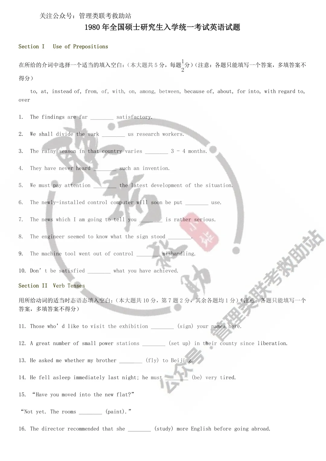 1980年历年考研英语真题+答案集合(无解析)