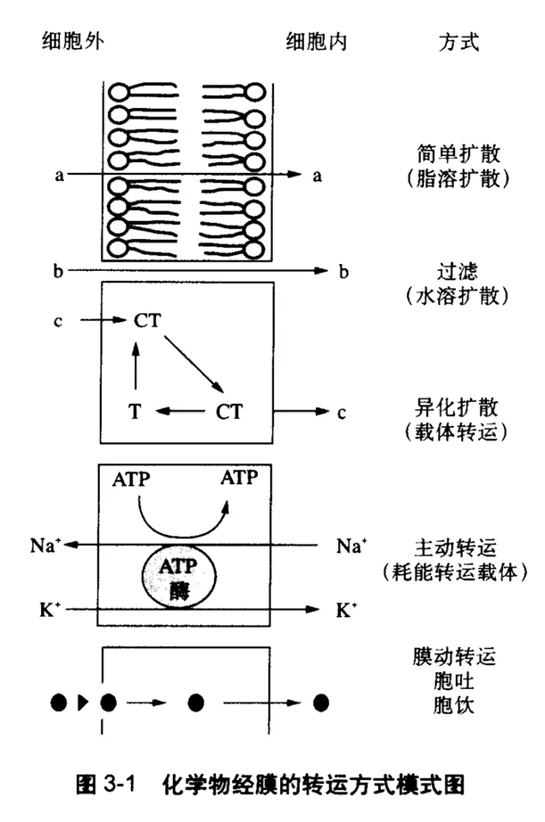 外源化学物通过生物膜的方式:被动转运、特殊转运和膜动转运