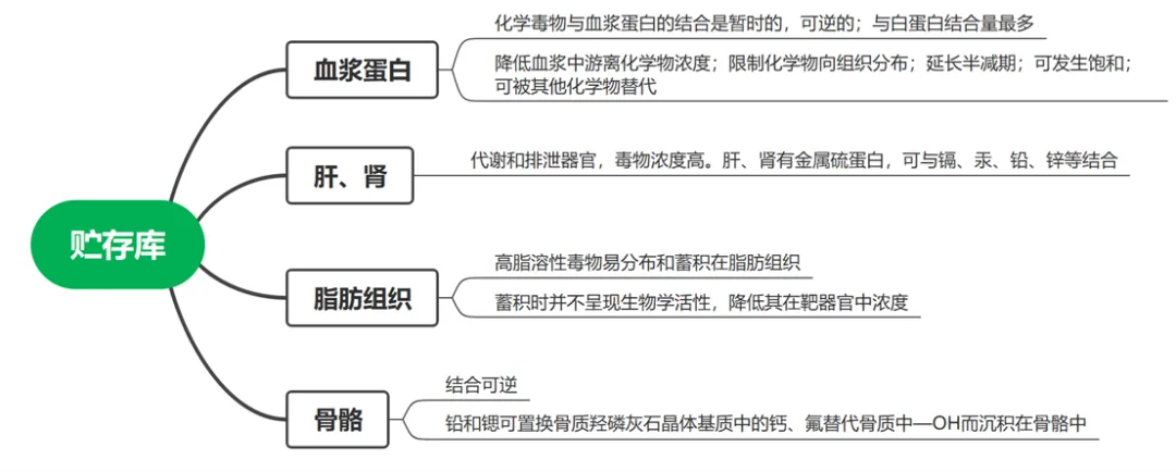 化学毒物蓄积的部位均可认为是贮存库(storage depot),贮存库是慢性毒性作用发生的物质基础。