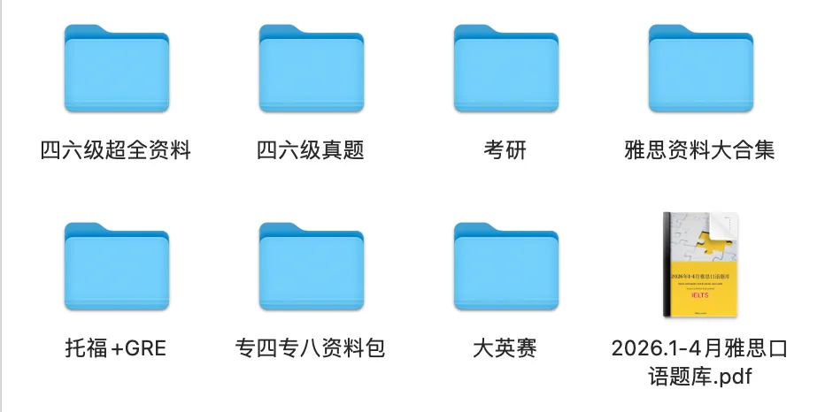 所有资料均由新东方资深教研团队精心打磨,拒绝千篇一律的通用模板,从资料的内容筛选、考点梳理到技巧总结,都精准匹配西政er的四六级通关、雅思托福备考、大英赛冲刺等核心需求。每份资料都经过多轮校对优化,涵盖高频考点、实用技巧和场景化应用指南,拿到就能直接用,帮你省去筛选整理资料的时间,高效开启假期英语提升计划!
