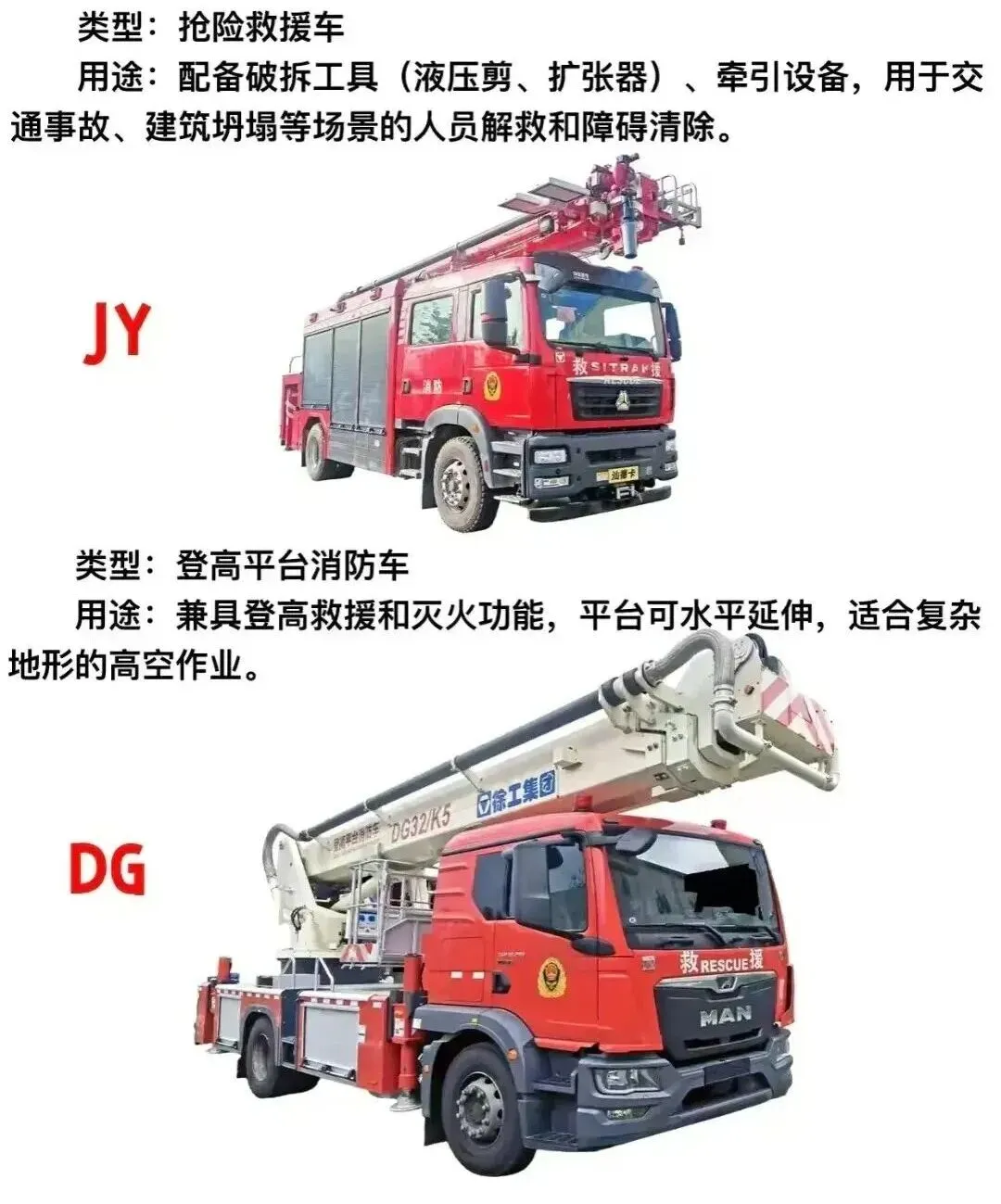又称“救援勤务车”,配备破拆、顶撑、牵引、照明等各类救援工具,但不带灭火剂。用于交通事故、建筑坍塌、自然灾害等现场,执行人员搜救、破拆、障碍清除等综合救援任务。