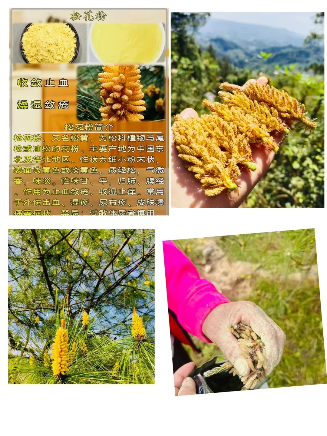 科属:松科植物马尾松等的干燥花粉。