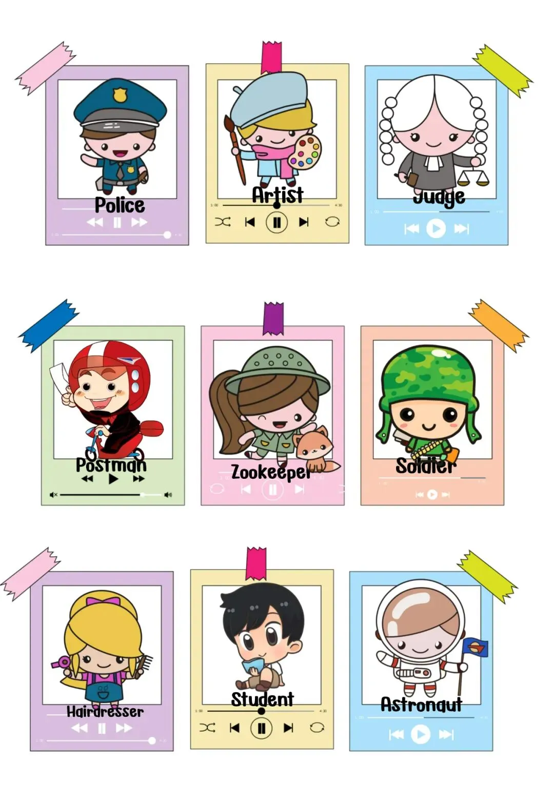 今天分享的是职业主题英语学习素材,包含5套精美PPT、6套教具、4套练习和4首歌曲!