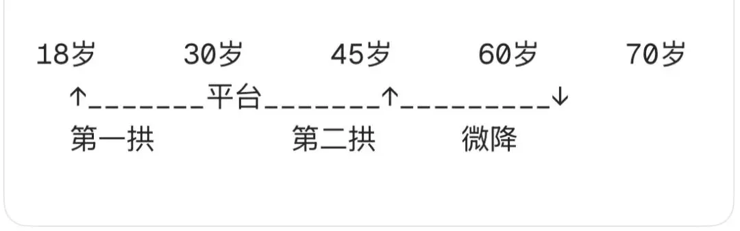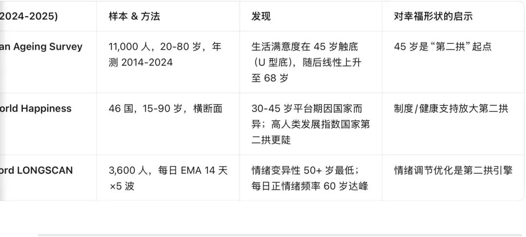 • 第二拱:45-70 岁再次攀升(情绪调节优化 + 价值聚焦)