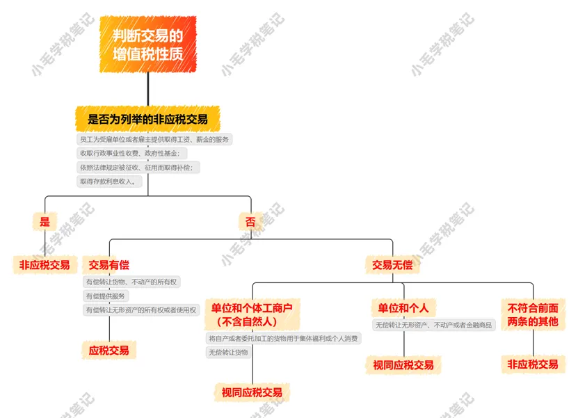 可以用一个逻辑来判断交易属于下面哪一类,首先看这个交易具体在增值税上属于什么样的性质:
