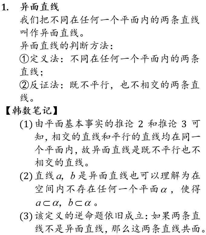 >数学学习笔记-高中-空间两条直线的位置关系