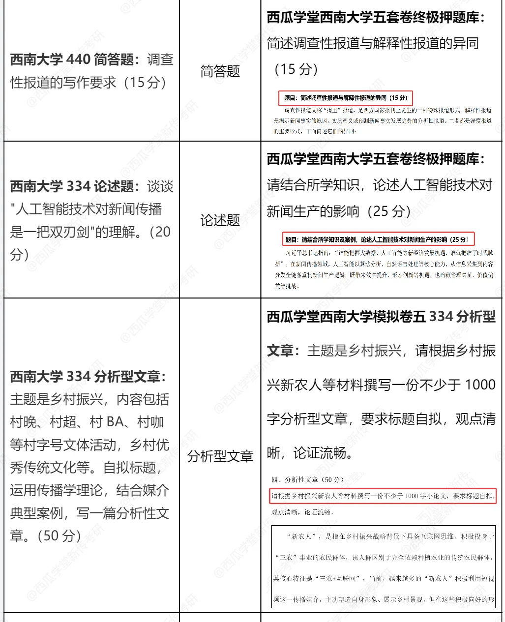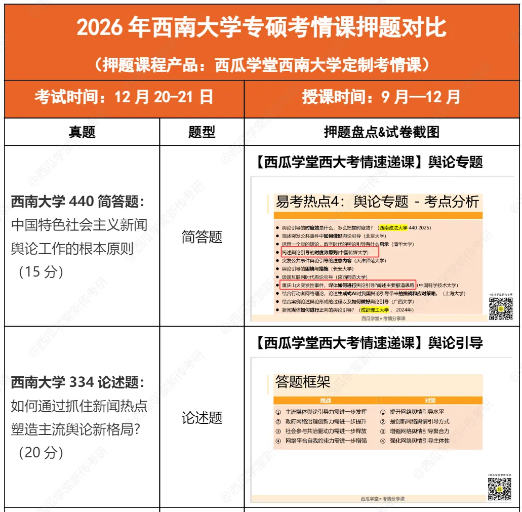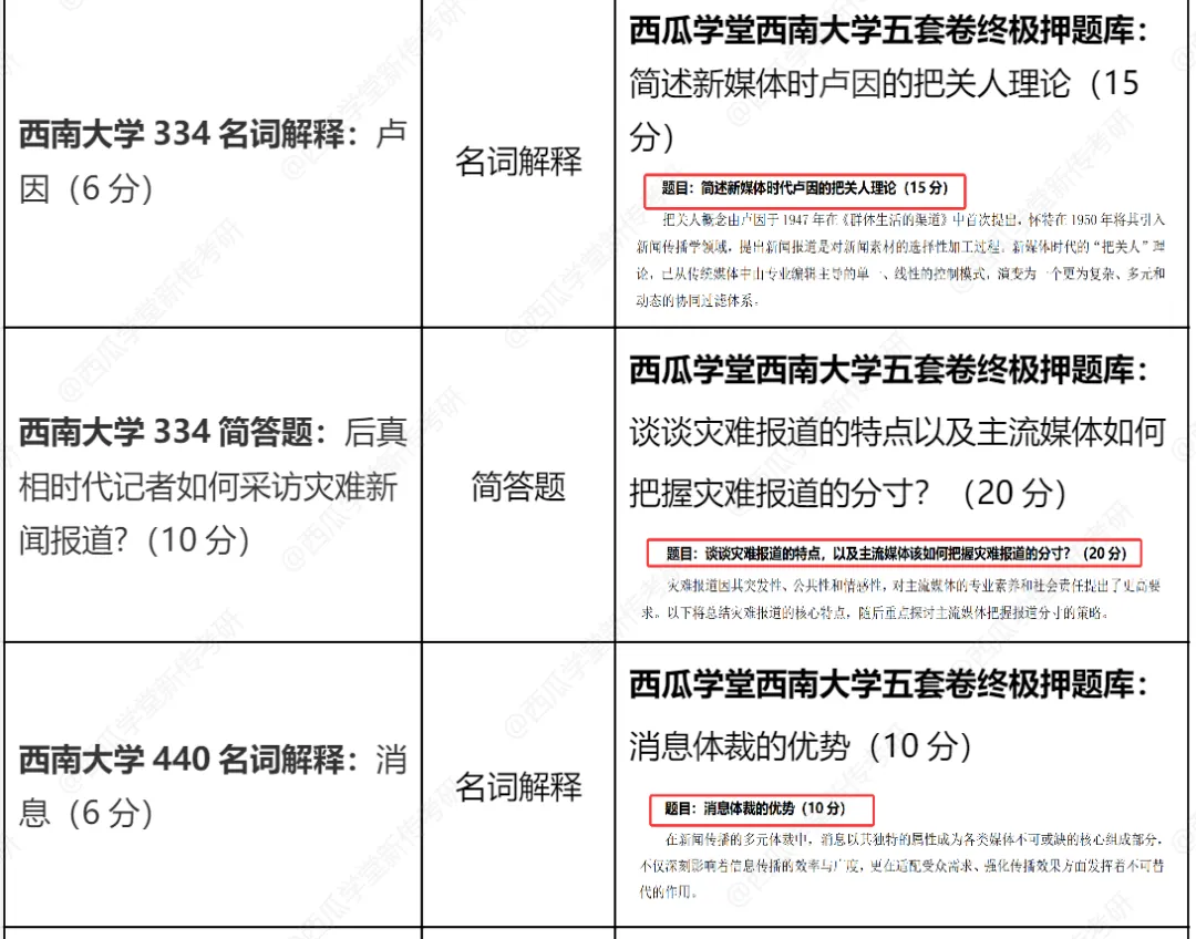 包含西南大学新传专硕2015-2026年最具参考性的近10年的最新专硕真题,以及2021-2026高分学长姐撰写的考场回忆版完整答案+考题点拨!