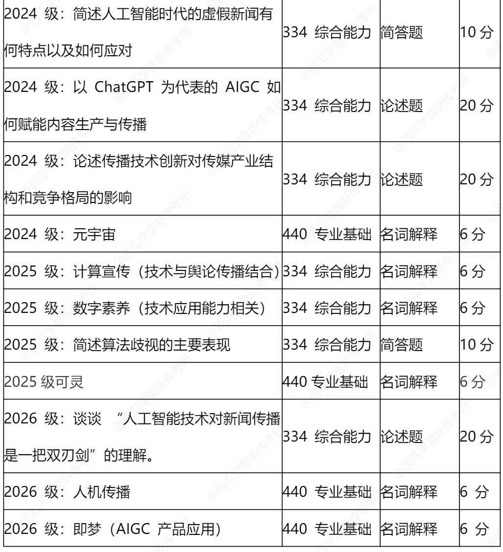 真题出来也是让人两眼一黑的程度,名词解释26级出“即梦”、25级出“可灵”,这两个题是可以上全国新传考研偏难怪题榜单的类型。