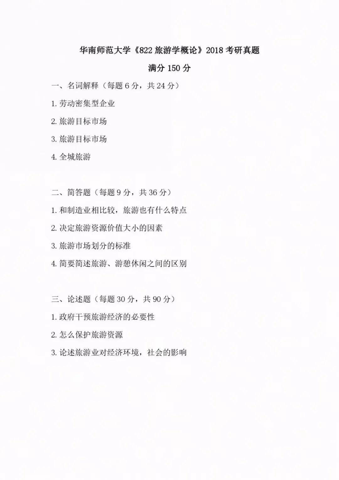 >【真题精选】华南师范大学822旅游学概论考研真题