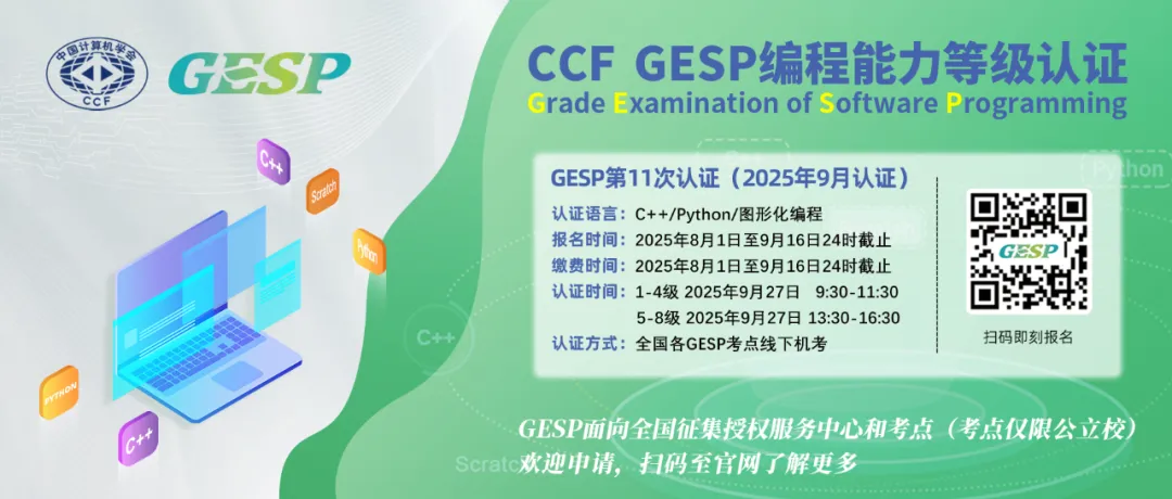 同时,GESP的高级级别(尤其是六级以上)内容与CSP - J/S的考查范围有重叠和衔接,为 后续竞赛学习打下坚实的理论和编程基础。