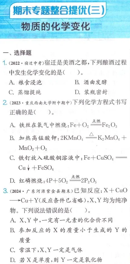 文件:Harry 初中化学 9年级上册 人教版 期末专项整合训练卷(6套).pdf