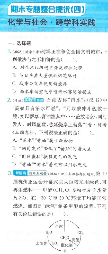 化学与社会·跨学科实践