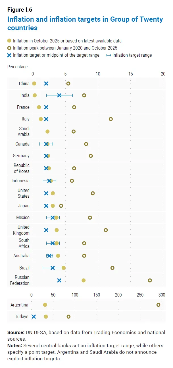 拉美与加勒比:增长温和,预计2026年增长2.3%。高债务、高通胀和全球贸易紧张局势是主要拖累。