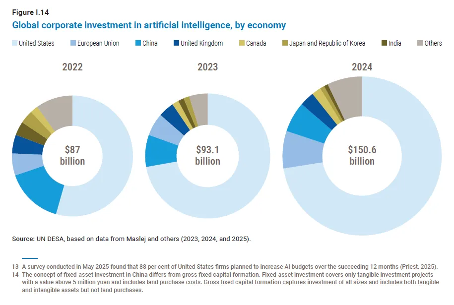 AI驱动的局部热点:在人工智能领域,投资异常强劲,主要集中在美国等少数发达经济体的大型科技公司。这虽然是个亮点,但加剧了资本分配的不均衡。