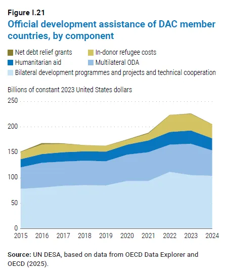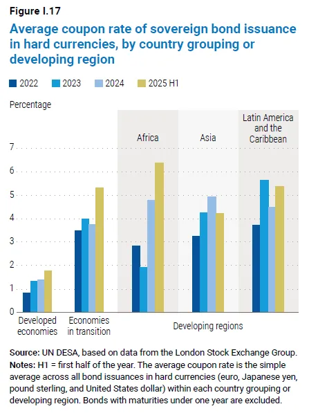 发展中国家:虽然总体债务水平低于全球平均,但债务比率持续上升,2025年达到约76.9%。许多最不发达国家(LDCs)面临高债务风险或已陷入债务困境。