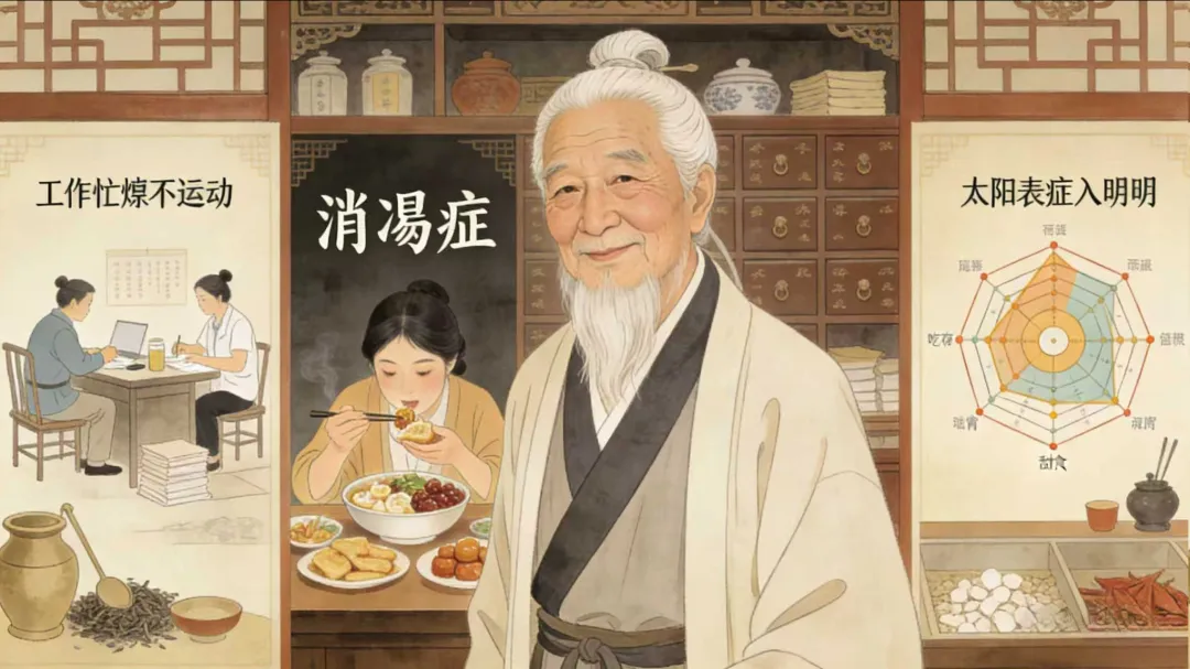 在中医来看,“消渴症”类似现在西医所说的“糖尿病”。“消渴”顾名思义,是缺水的意思,因为水无法进入血管,所以患者会觉得口渴。