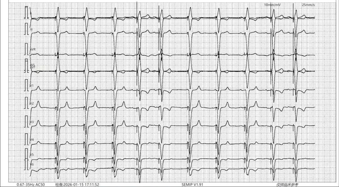 然后胸导联移行偏早,I.avL预激波朝上,所以考虑右侧后间隔旁路。