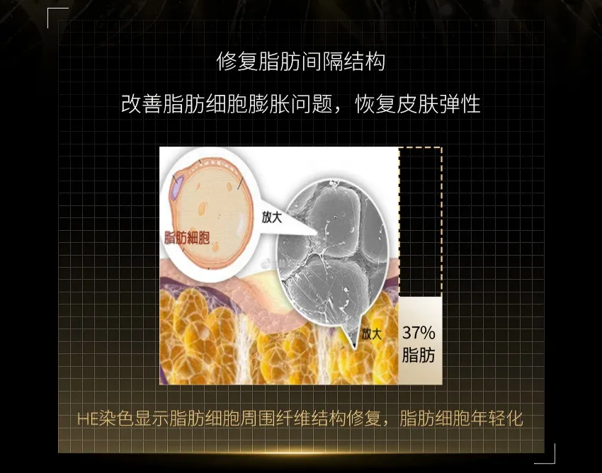 补充胶原纤维网:通过生产工艺升级,直接补充因各种原因老化、脆弱、断裂、流失的胶原纤维网,发挥物理填充作用,更直接、更高效地为兜起眼周衰老肌肤,恢复肌肤弹性、改善松弛、提升紧致度。