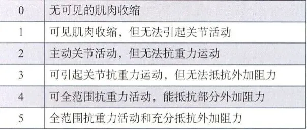 肌力测试:徒手肌力分级标准参考如下图