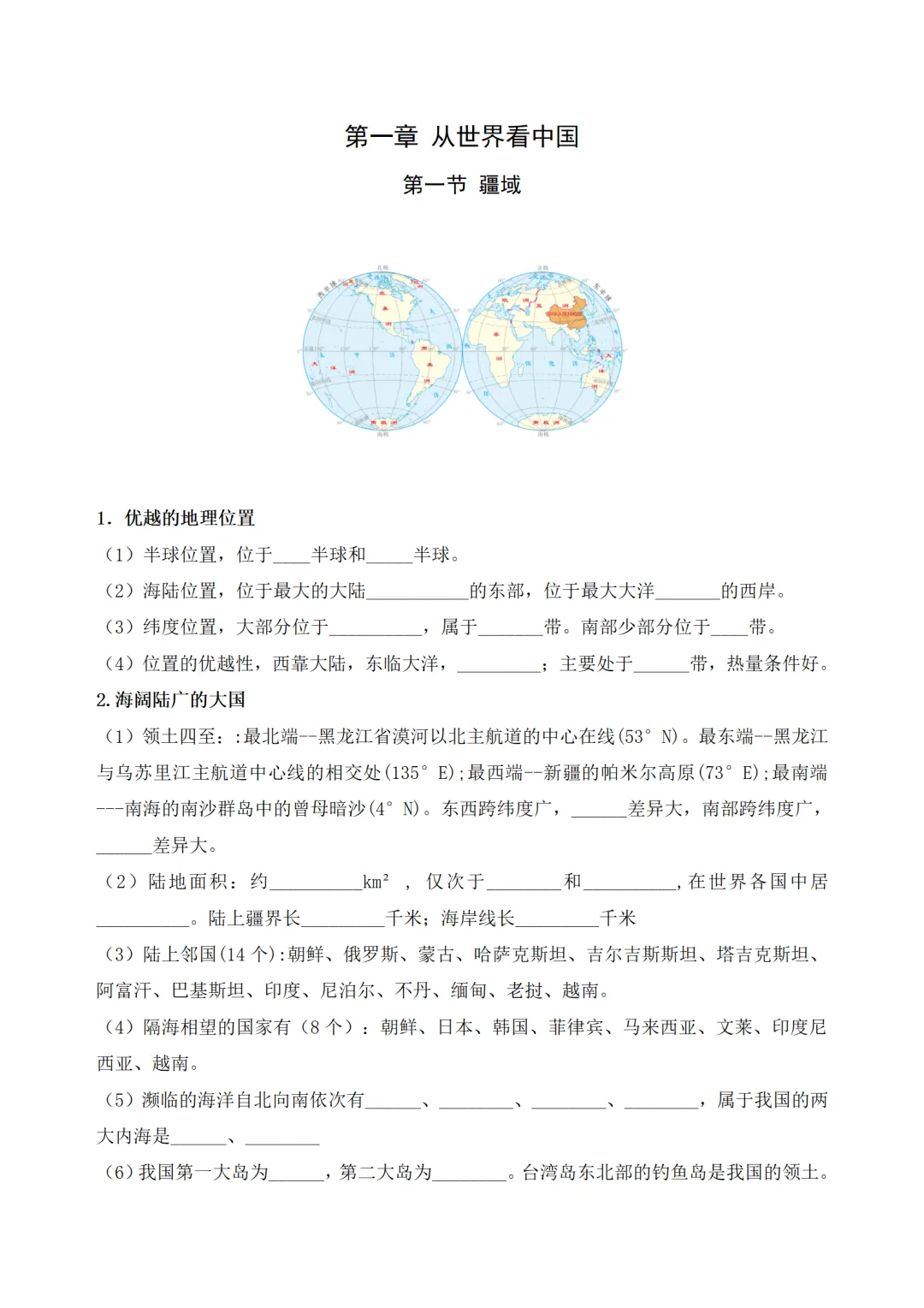 【复习资料】学习清单·八年级上·从世界看中国