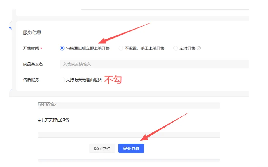 咱们可以不承诺七天无理由退换,因为咱们是电子产品,虚拟产品,剩下你就提交就可以了。