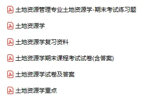 今天分享的资料是「0612-土地资源学」电子版+学习笔记+知识点总结+期末考试重点+复习资料+习题集及答案+名词解释+历年真题试卷及答案+题库及答案+复习重点+思考题及参考答案+公式总结+考试重点基础题+知识总结+高清PDF可打印+免费分享!