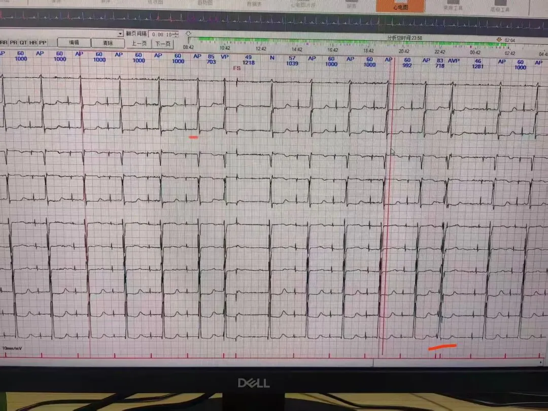 患者数年前因三度房室传导阻滞后晕厥,植入心脏起搏器,植入后诉一直心慌不适就诊,一直应用抗心律失常药物,效果不好,心电图见,快心室率VP,患者心慌不适,