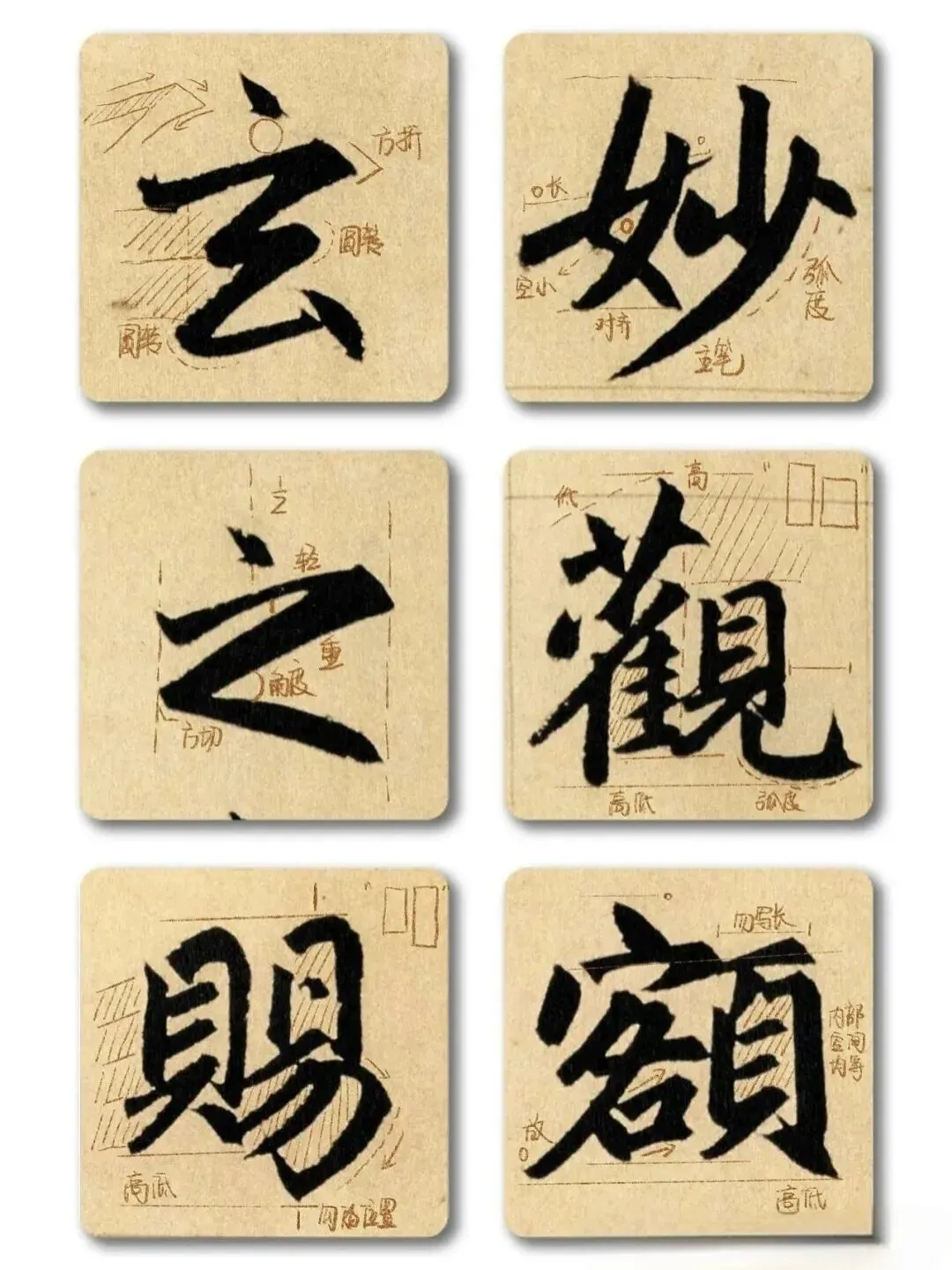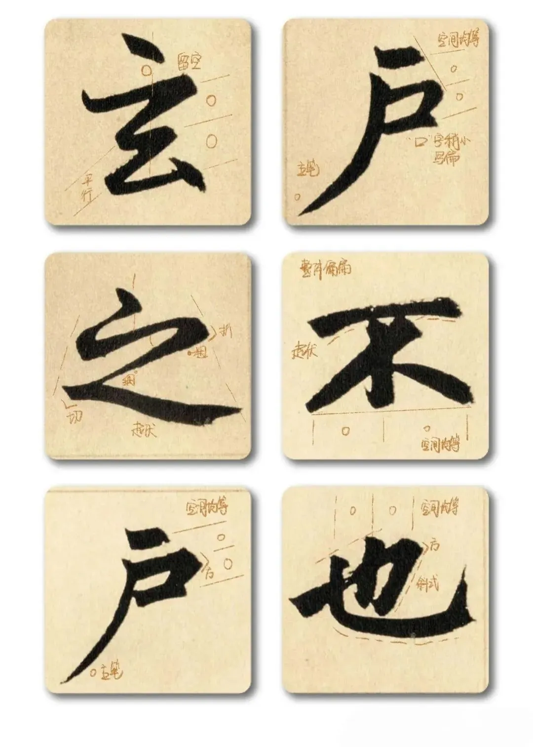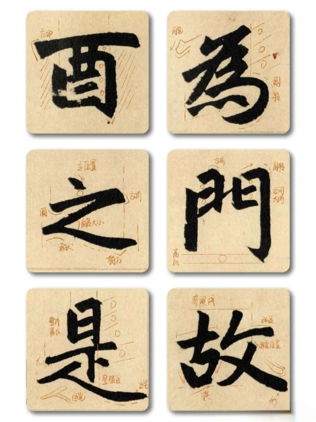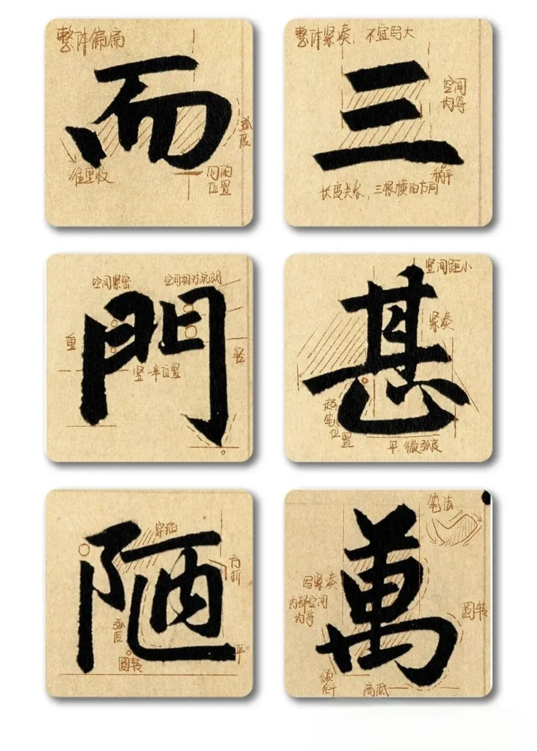 《三门记》起笔藏露兼用,用笔清晰而不含混,笔画圆润遒媚而不失筋骨,这体现在笔画的提按分明与笔圆架方上;此帖结体宽绰舒展、端秀劲挺,逆入回锋、笔道停匀;点画间左右呼应,一气呵成;章法安排肃整,布白匀称,颇有谨严工丽、四平八稳之象。