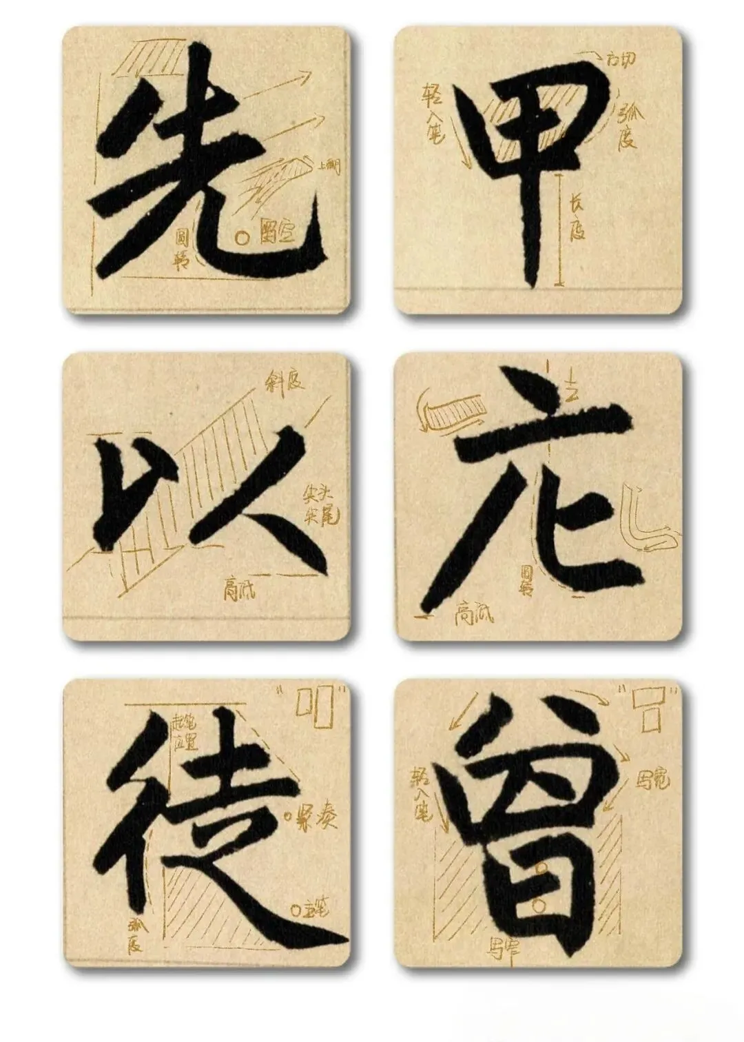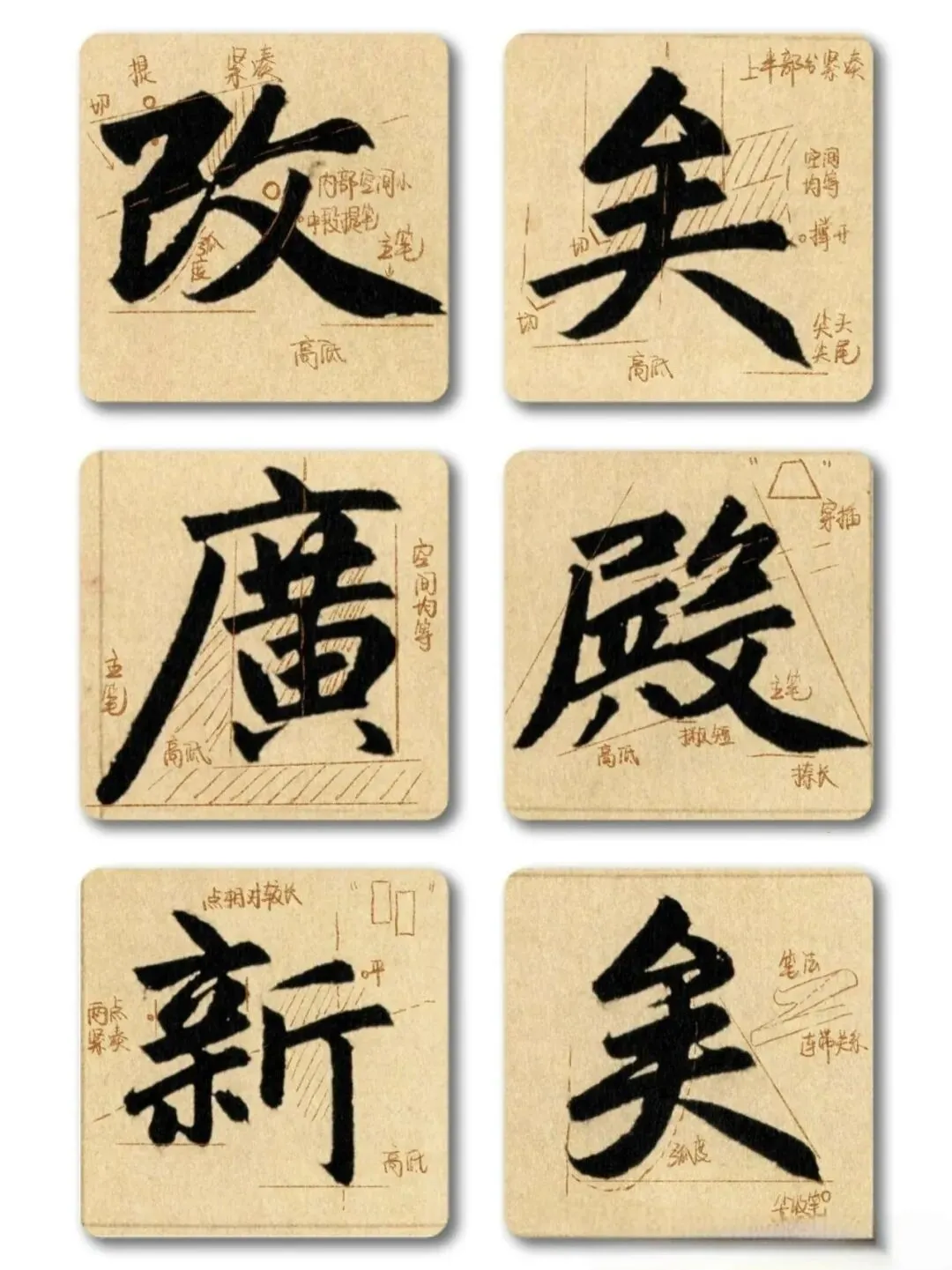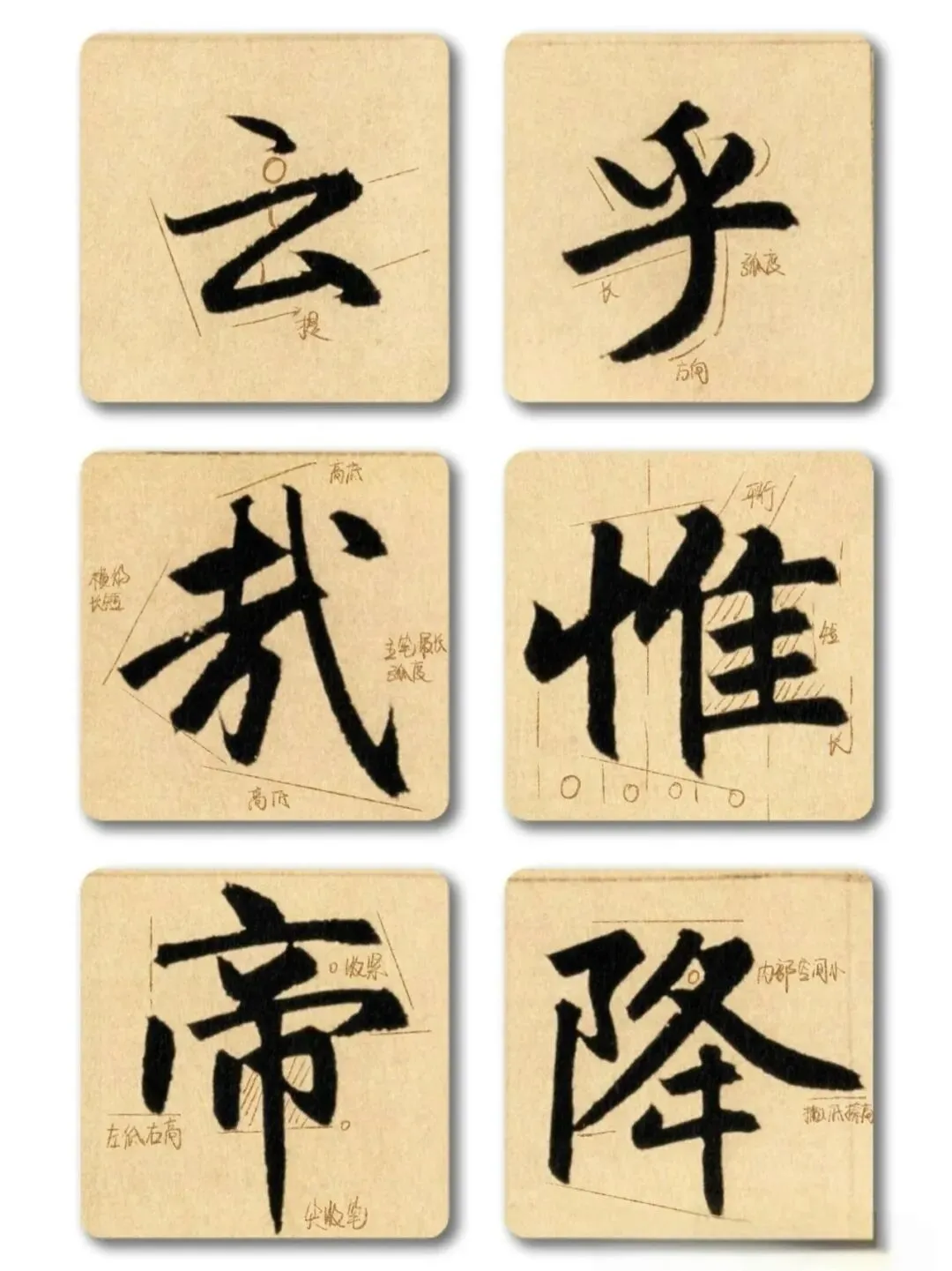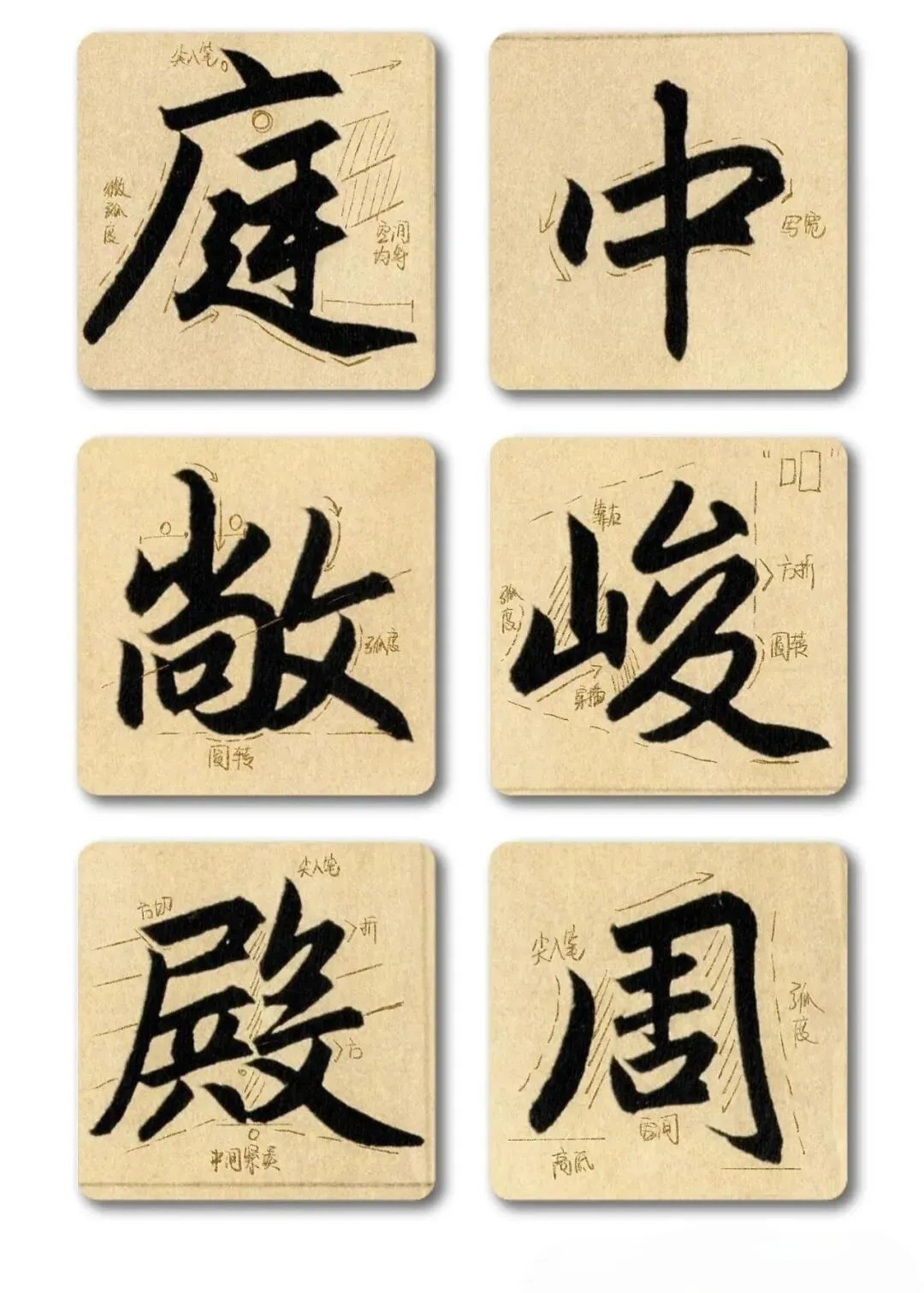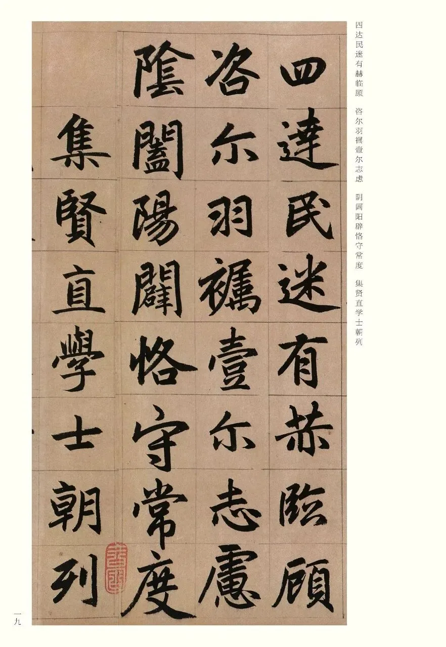《三门记》起笔藏露兼用,用笔清晰而不含混,笔画圆润遒媚而不失筋骨,这体现在笔画的提按分明与笔圆架方上;此帖结体宽绰舒展、端秀劲挺,逆入回锋、笔道停匀;点画间左右呼应,一气呵成;章法安排肃整,布白匀称,颇有谨严工丽、四平八稳之象。