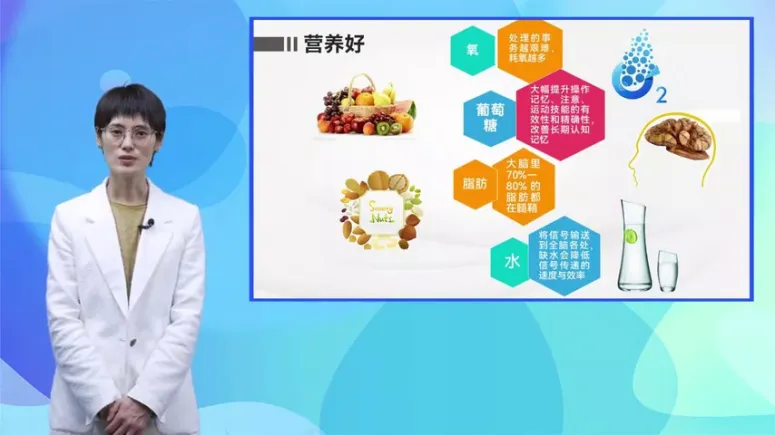 相反,如果髓鞘脂肪消失,往往就会伴随着神经退行性疾病,妨碍大脑里神经元的沟通,让大脑不能正常发挥作用,所以想让大脑表现得更好,绝对不能忽视脂肪的作用。第三是水,水对于确保信号传递道路畅通同样重要,我们也可以简单的理解为,充足的水有助于将信号输送到全脑各处。相反缺水会降低信号传递的速度和效率。第四是氧,氧气同样是大脑的燃料,儿童青少年在学习过程中处理的任务越艰难,越艰巨,耗氧量也就越高。