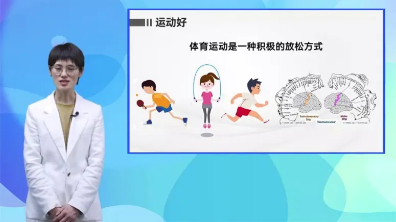 当然除了乒乓球、慢跑、健步走、跳绳等有氧运动也都是不错的选择。另外手指的运动也可以促进相关大脑机能,比如言语技能的发展,虽然人的躯体的各个部分都在大脑皮层上有所对应,但这种对应并不按照这些躯体部分的实际大小而定,而是依据它们在机能上的重要程度和应用程度而定,越重要的部分功能区越大,越相关的地方离得越近,手指在运动皮层占的比例相当大,而且与语言区十分接近,因此和手指有关的运动,包括使用筷子打算盘、弹钢琴、打键盘、做手工、写字、画画、手指操等,都是儿童青少年开发大脑保健大脑的好方法。