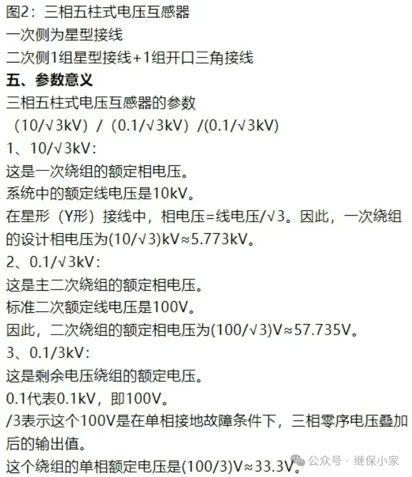 - 电压变换:将高电压按比例转换成标准的低电压,通常为100V或者100/√3,使得普通装置和仪表可以直接接入。