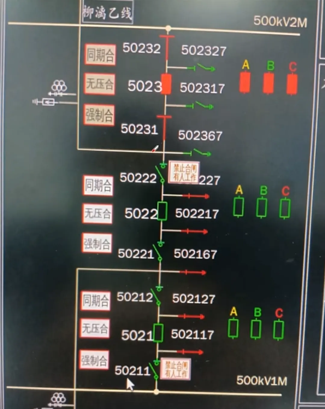 500kV与220kV最大的区别在于,500kV母线的CVT往往只有一相,而主变或者线路是有三相的。造成这样的原因是因为,500kV线路采用3/2接线,它可以通过边开关和中开关的配合,使得其从不同的母线供电,这样子很难确定其采用哪段母线供电。虽然也可以通过设计知道,但因为其刀闸和开关较多,设计相对复杂,成本高故不采用。所以线路和主变都在其本线路和变高处安装自己的CVT获取三相电压。这时母线的电压作用就下降了很多,但也不是没有用,当用于同期合闸或者重合闸时就需要用到母线的电压。故此时母线电压往往只取A相(类似220kV线路的TYD)。断路器保护和线路保护的三相电压取自该线路。5023靠近2M 所以断路器保护和断路器测控母线电压取自2M。
