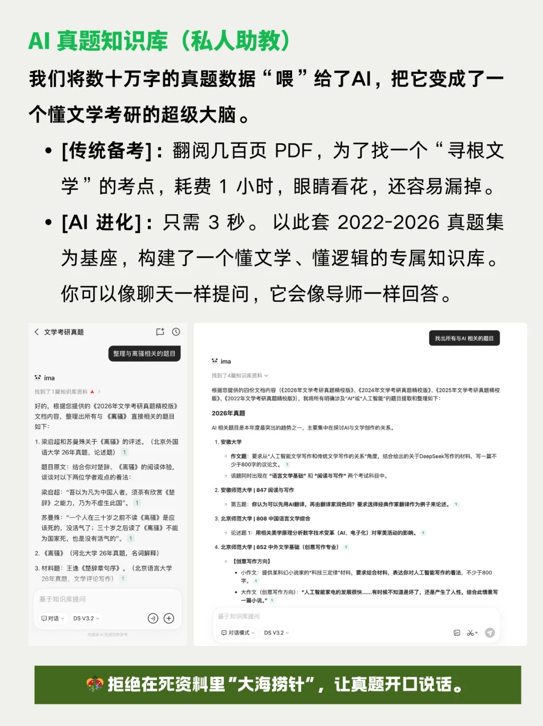 为了打破这个“信息差”,在过去的两个月里,我整理了 2022~2026 年,近 5 年全国各大高校的文学考研真题。不是简单的打包,而是逐字精校、重新排版,并设想用AI 技术赋能,让备考有方向,事半功倍。
