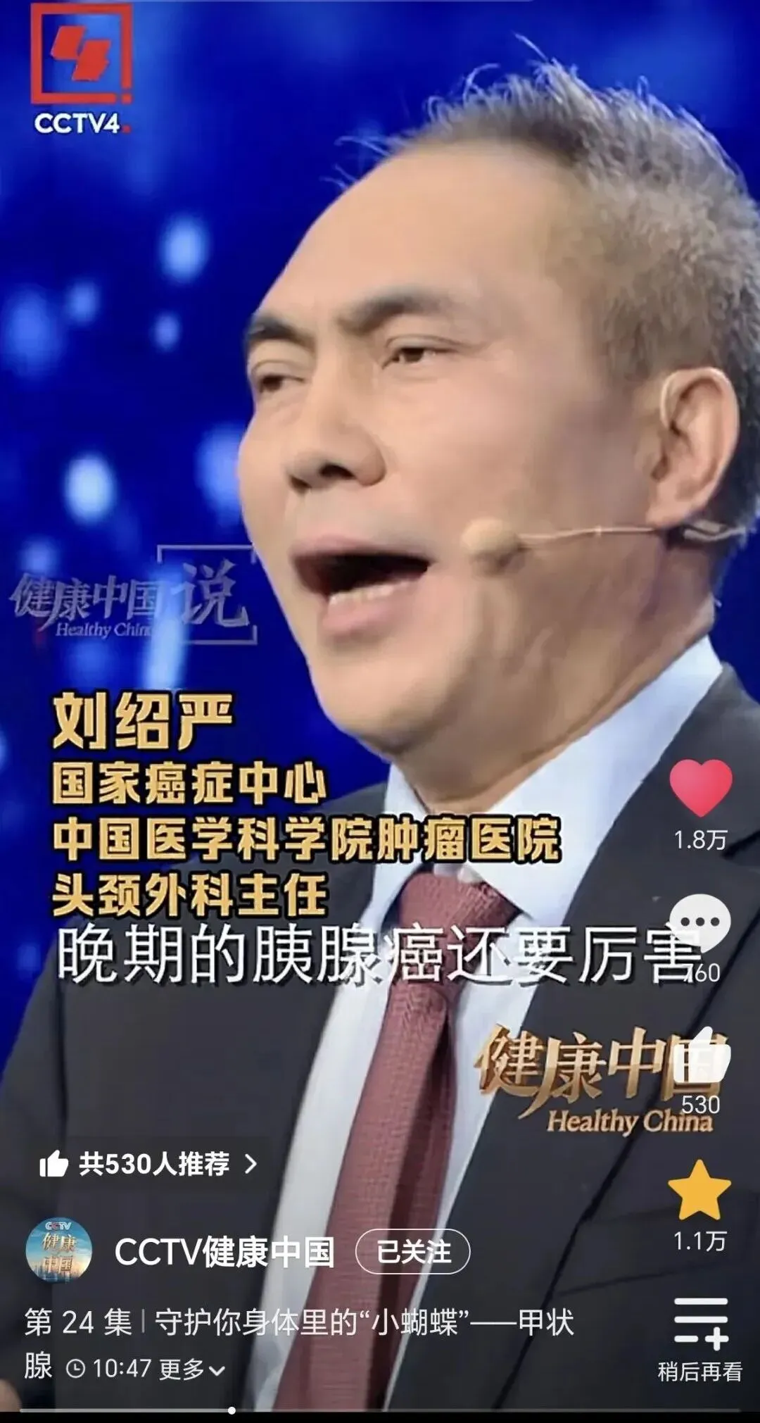 刘主任就提到甲状腺癌如果分型不好,严重的可以超过晚期的胰腺癌,我们都知道胰腺癌被称为癌症之王。