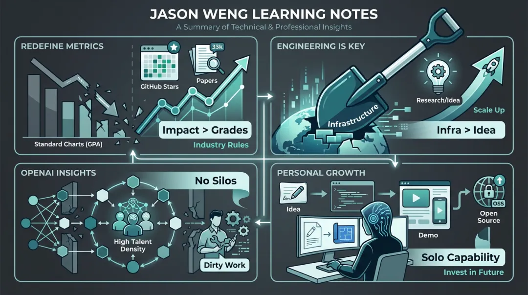 原始采访:Bilibili 视频采访:OpenAI 研究员翁家翌本文记录了从该访谈中提炼出的对个人成长、工程实践及 OpenAI 工作模式的思考与洞见。