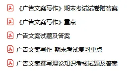 今天分享的资料是「0216-广告文案写作」电子版+学习笔记+知识点总结+期末考试重点+复习资料+习题集及答案+名词解释+历年真题试卷及答案+题库及答案+复习重点+思考题及参考答案+公式总结+考试重点基础题+知识总结+高清PDF可打印+免费分享!