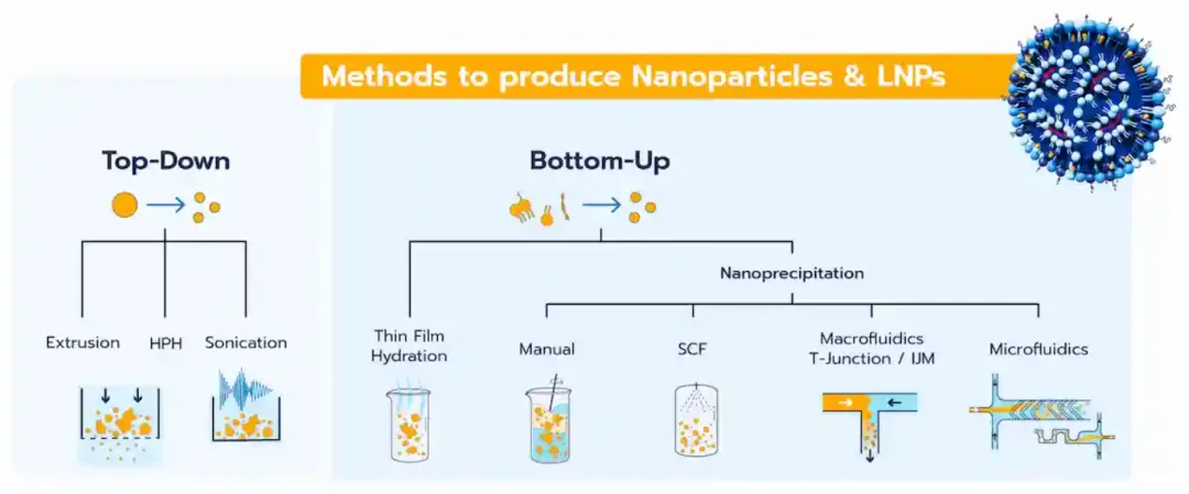 LNP的合成方法,或者更广泛地说,所有基于脂质的纳米颗粒的制造方法可以归为两类: