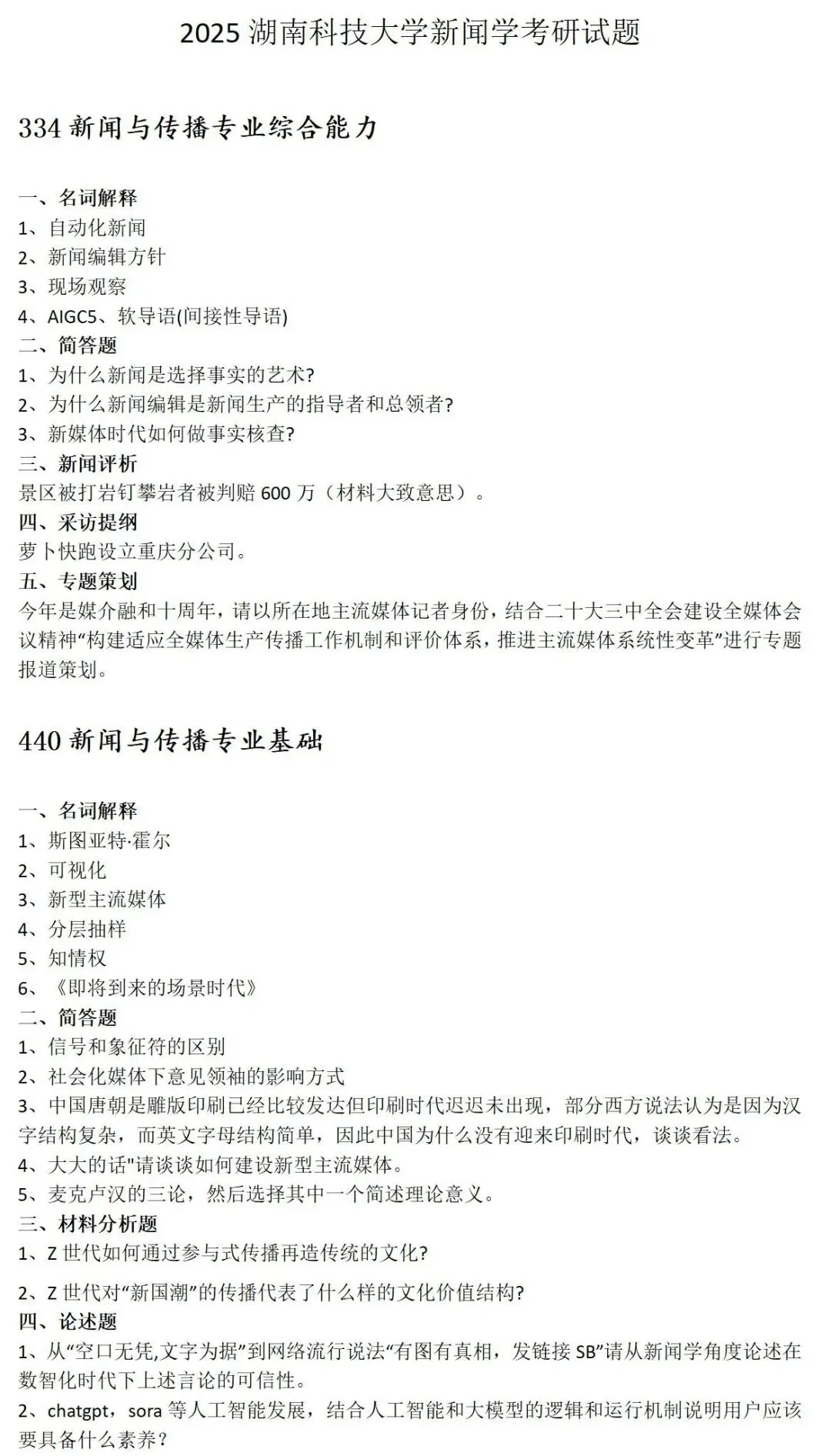 >湖南科技大学新闻与传播考研真题2020-2025历年