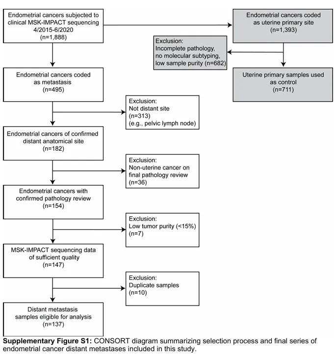 2. 从1888例子宫内膜癌中筛选出 137例远处转移性EC和 711例原发性EC(肿瘤纯度>15%)用于后续分析;