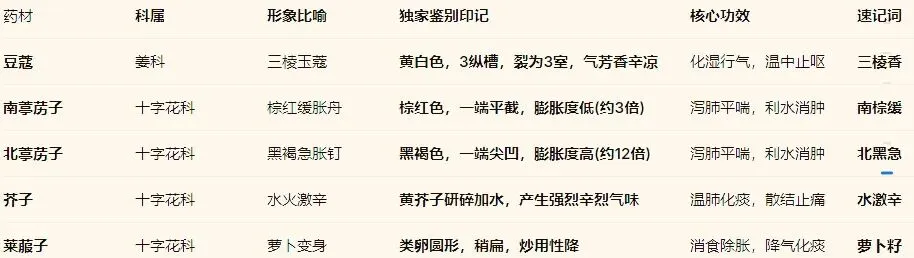 独门绝技:黄芥子研碎后加水浸湿,会产生强烈的辛烈刺激性气味,此为鉴别关键。