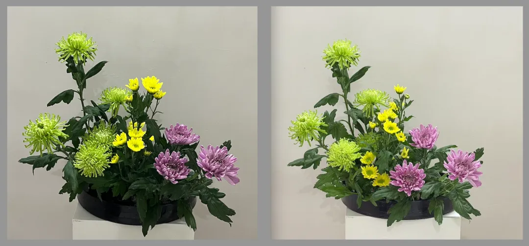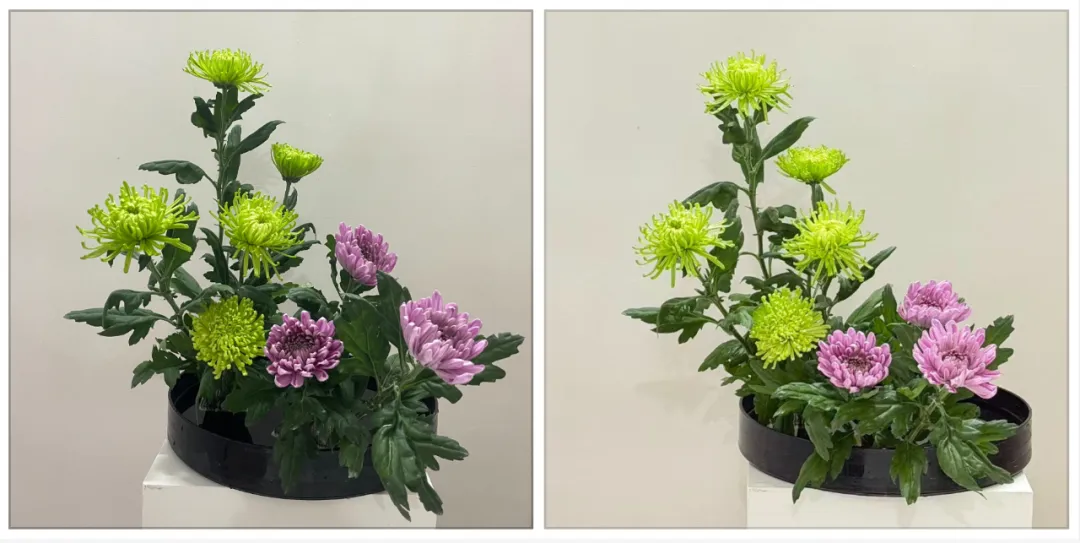 - 注意花、叶的伸展和排放,不局促,给人以一种展开、从容大气的感觉