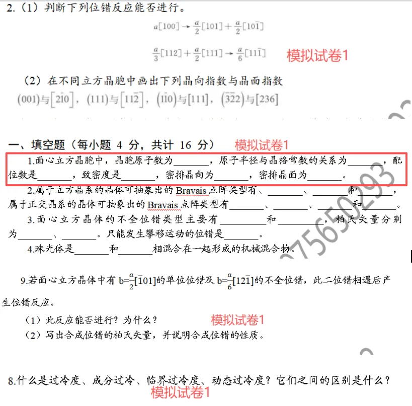 可以看到,名词解释其实相对来说是非常简单的,可以说是送分题啦,基本上都是常规性题目,除了位错宽度这一个,其他的轻松拿下。同时,在我们滴模拟试卷里面也都考察过哦!其余的在师兄整理的真题详解答案(独家)里面都有滴哦,师兄就不一一列举啦,大家可以加文末专业群领取!