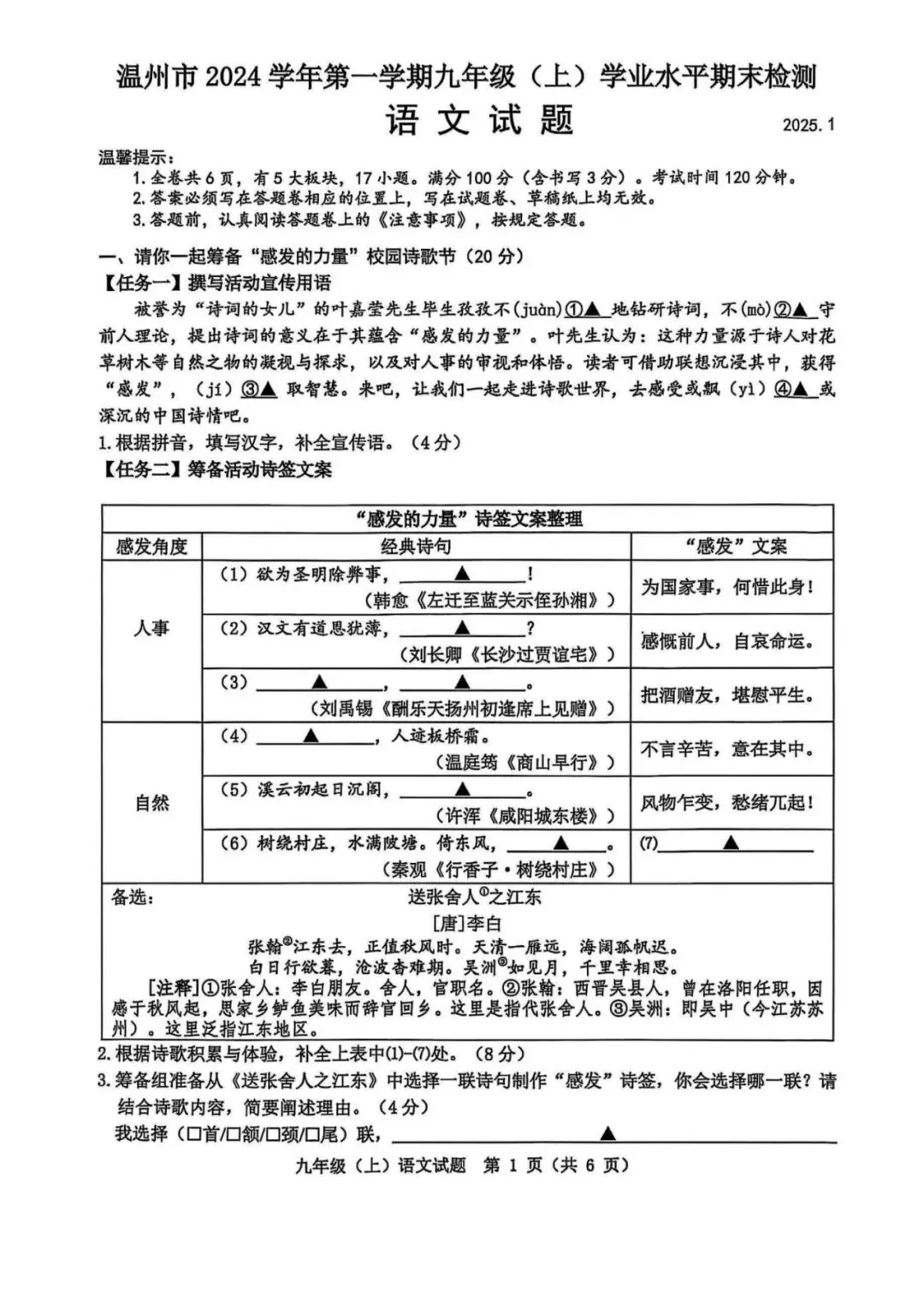 学习资料|温州市2024学年初三第一学期学业水平期末检测各科试题及答案汇总(内含下载链接)