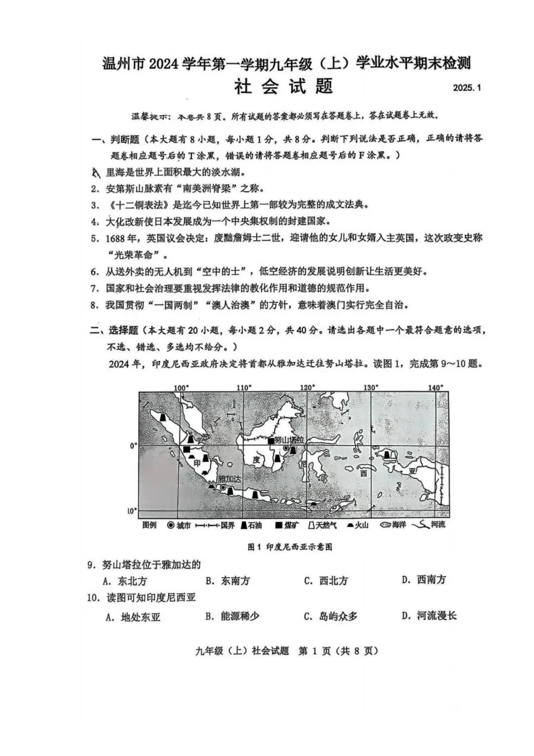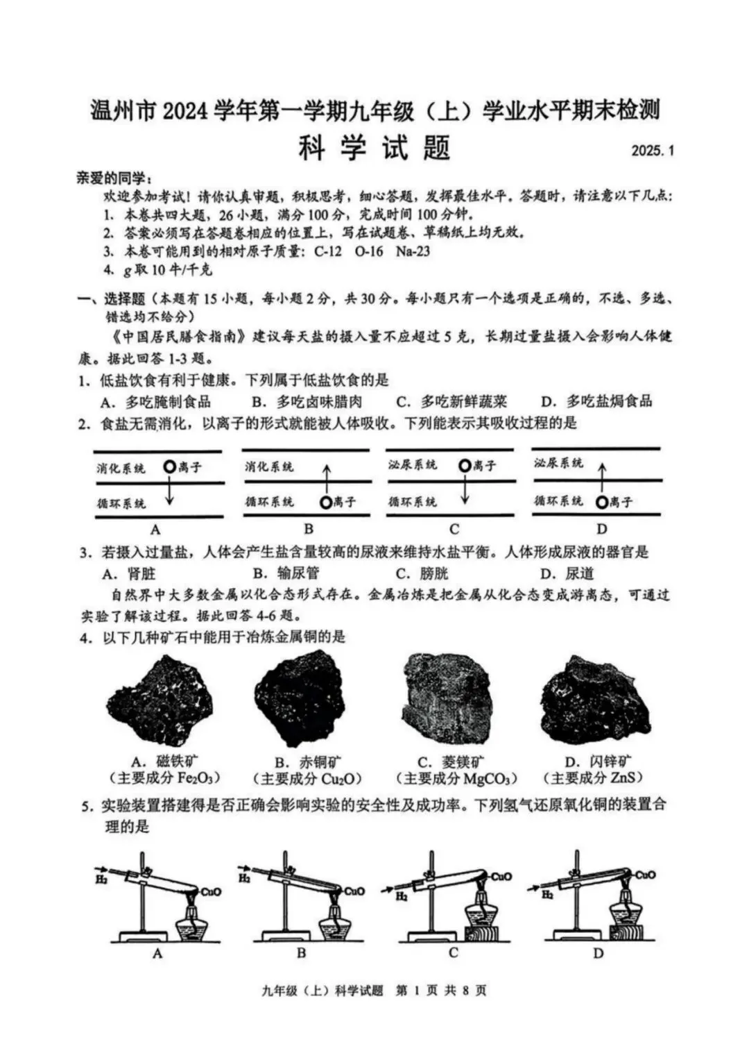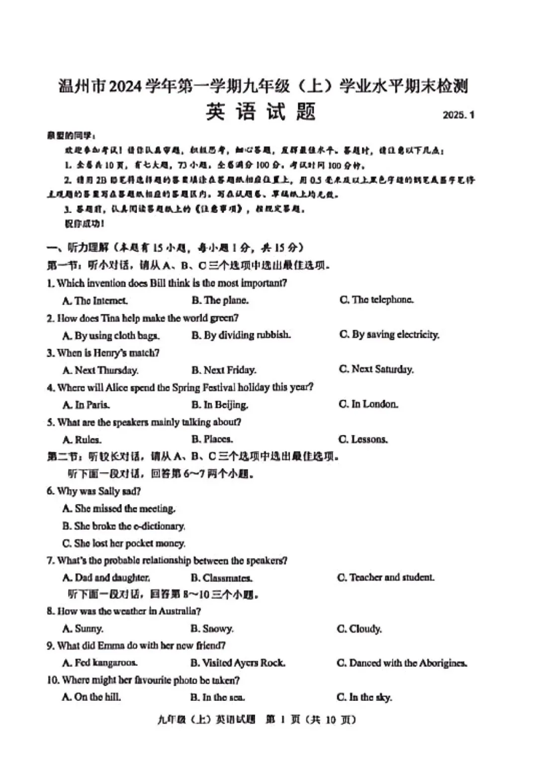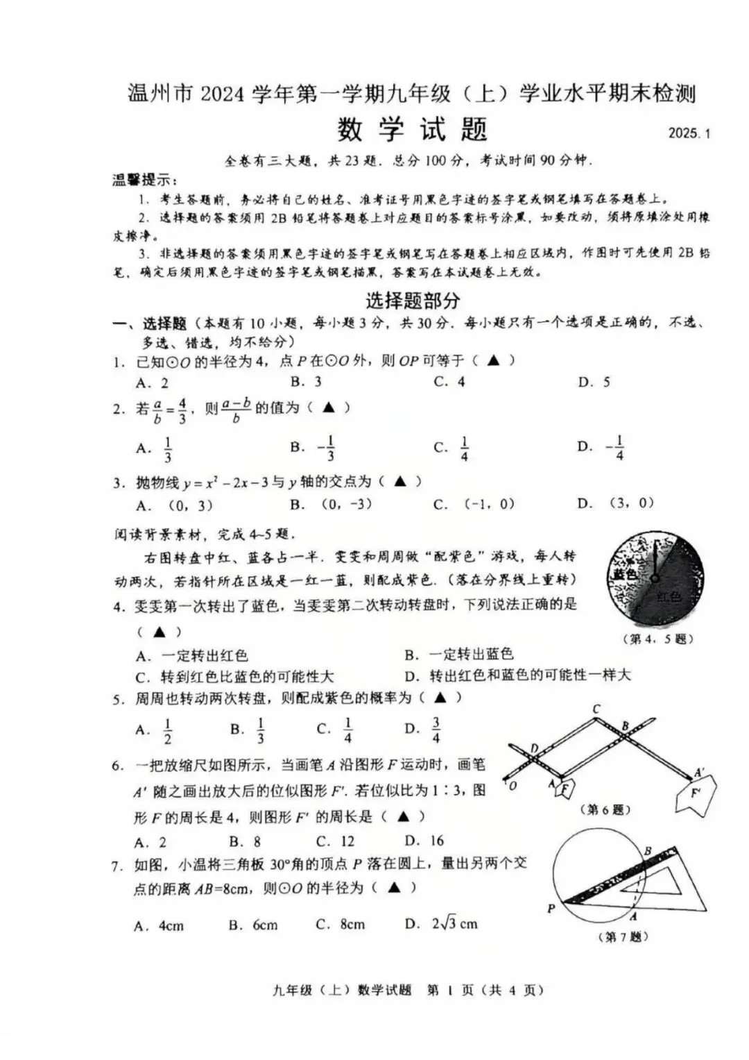 >学习资料|温州市2024学年初三第一学期学业水平期末检测各科试题及答案汇总(内含下载链接)