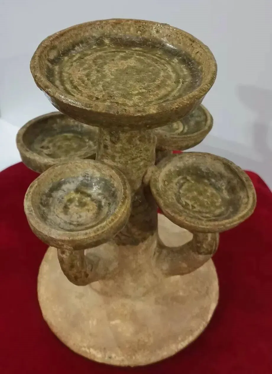第一件酱黄釉短颈鼓腹瓶,凭图判断为唐代寿州窑或河南窑口真品。第三件越窑(系)青釉五联盏灯,凭图判断为东汉真品。第四件相州窑白釉贴塑飞鸟花卉灯台,凭图判断为隋代真品。第三件磁州窑外黑釉内白釉诗文碗,凭图判断为元代早真品。第一件龙泉窑剔刻洞石花卉铺首罐,凭图判断为明中真品。友情提醒: