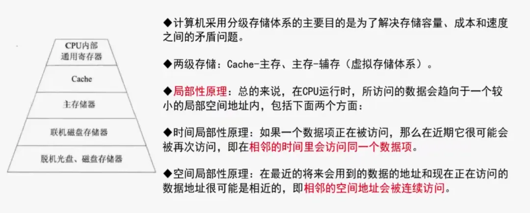- • Cache的功能:提高CPU数据输入输出的速率,突破冯•诺伊曼瓶颈,即CPU与存储系统间数据传送带宽限制。